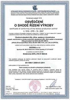 ČSN EN ISO 3834-2, ČSN EN 1090-1 и ČSN EN 1090-2.